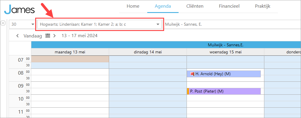 Als hier een locatie niet aan staat, maar je wel een rooster hebt, dan zal deze niet zichtbaar zijn. Vink dan alle locaties aan en je afspraken zullen weer zichtbaar zijn.