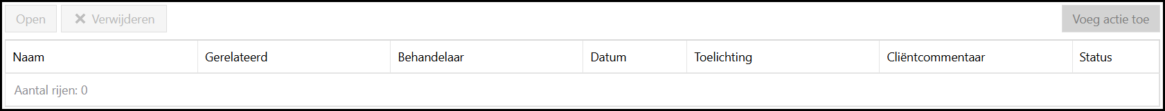 - [Open]: Opent het geselecteerde dossier zodat je het kunt bekijken en invullen.