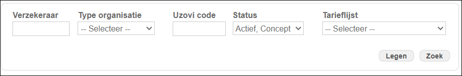 Verzekeraar: zoek naar een verzekeraar met de ingevulde tekst in de naam.