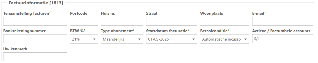 Bankrekeningnummer: Rekening voor facturatie en automatische incasso
