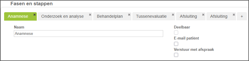 - Fasen toevoegen doe je door op het + tabblad te klikken.