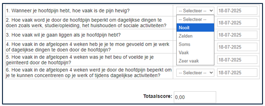 Het werken met gescoorde vragenlijsten is één van de complexere onderdelen binnen een dossiersjabloon. Wil je zelf een vragenlijst toevoegen? Dan kun je extra uitleg of ondersteuning aanvragen bij onze supportdesk.