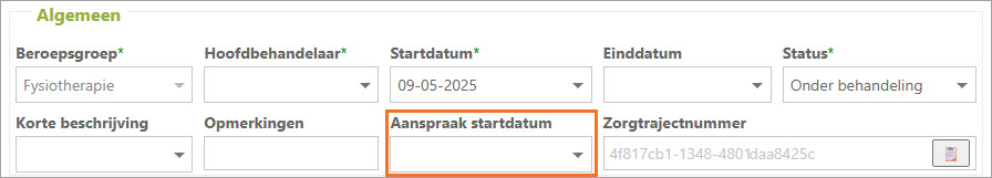 De aanspraak startdatum moet altijd vóór de startdatum van het zorgtraject liggen!