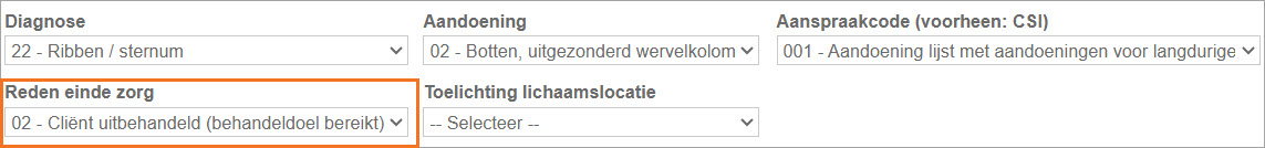 Voor professies waar in het consult de 'reden einde zorg' in te vullen is, is het zorgtraject af te sluiten door een afsluitende reden in te vullen in het laatste consult van het traject en het consult op te slaan. De reden einde zorg aanpassing is ook verplicht als je werkt met een PREM.