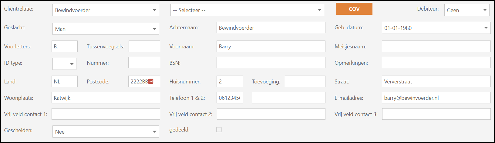 [COV]: Met een COV (Controle Op Verzekeringsgegevens) haal je de verzekeringsgegevens en het BSN van de contactpersoon op.