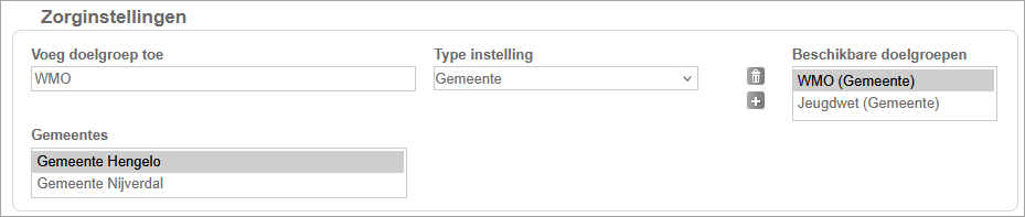 om de doelgroep en het type instelling naar het 'Beschikbare doelgroepen' veld te verplaatsen.
