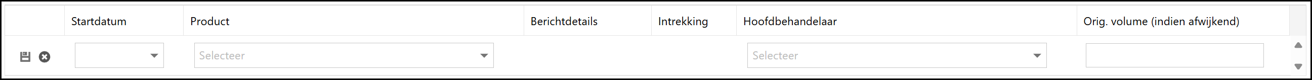 - Vul de velden 'Startdatum', 'Product' en 'Hoofdbehandelaar' in.